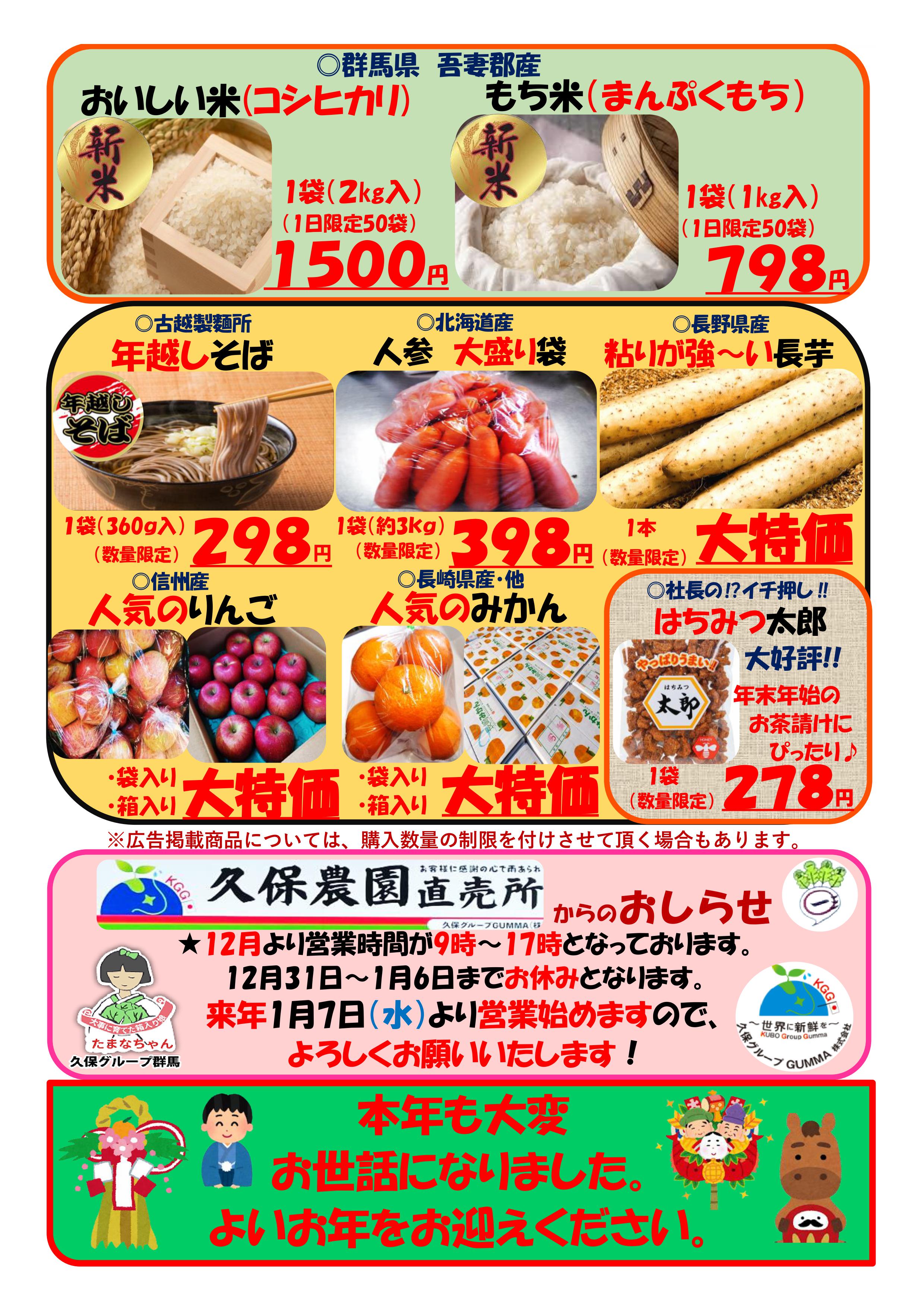 久保グループGUMMA株式会社では、長野原町北軽井沢の『久保さんちの新鮮野菜直売所』にて直営農場で生産したこだわりの新鮮な野菜の他、旬の野菜や果物、花、その他たくさんの食材、各種食品・日用品も販売しております。